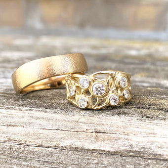 G.d. friede jeg til min kæreste - hun sagde selvfølgelig ja. Hun er helt fortabt i ringen. Den er - og bliver formentlig - den flotteste ring nogen af os nogensinde har set. Målet for mig var klart, at hun skulle have en ring, hun ville være stolt af at bære. I har formået at lave en ring der - med al respekt - er højtråbende, men stilren. Det er en svær, og udfordrende, opgave. Men det er en opgave, som i har klaret til UG.