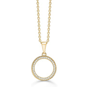 Rundt diamantvedhæng i guld eller hvidguld. Vedhænget er formet som en cirkel besat med hvide diamanter. I vedhænget sidder 36 brillantslebne diamanter. Diamanterne er i Wesselton/SI kvalitet, hvilket indikerer en meget hvid farve med få indeslutninger. Der er således tale om et smukt guldvedhæng i meget høj kvalitet, som vil kunne få enhver kvindes hjerte til at banke. Det er elegant, smukt og diskret, og vil matche enhver kvindes drøm uanset alder. Tidløs elegance på højt niveau.