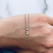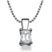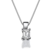 Vedhæng med en hvid 0,10 carat diamant i emeraldslib, som giver et firkantet og skarpt look. Selve smykket er lavet i guld eller hvidguld. Diamanten er i Wesselton/SI kvalitet, hvilket indikerer en meget hvid farve med få indeslutninger. Der er således tale om et smukt guldvedhæng i meget høj kvalitet, som vil kunne få enhver kvindes hjerte til at banke. Diamantvedhænget er stilfuldt og raffineret, og vil matche enhver kvindes drøm uanset alder. Tidløs elegance på højt niveau.