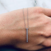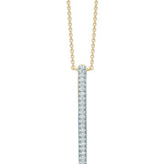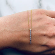 Dette elegante diamantvedhæng er en del af Stockholm kollektionen, der er inspireret af det minimalistiske i skandinavisk design. Vedhænget består af 21 hvide diamanter placeret på en række. Diamantrækken hænger lodret på kæden. Med vedhængets enkelthed og elegance passer den til enhver kvinde.